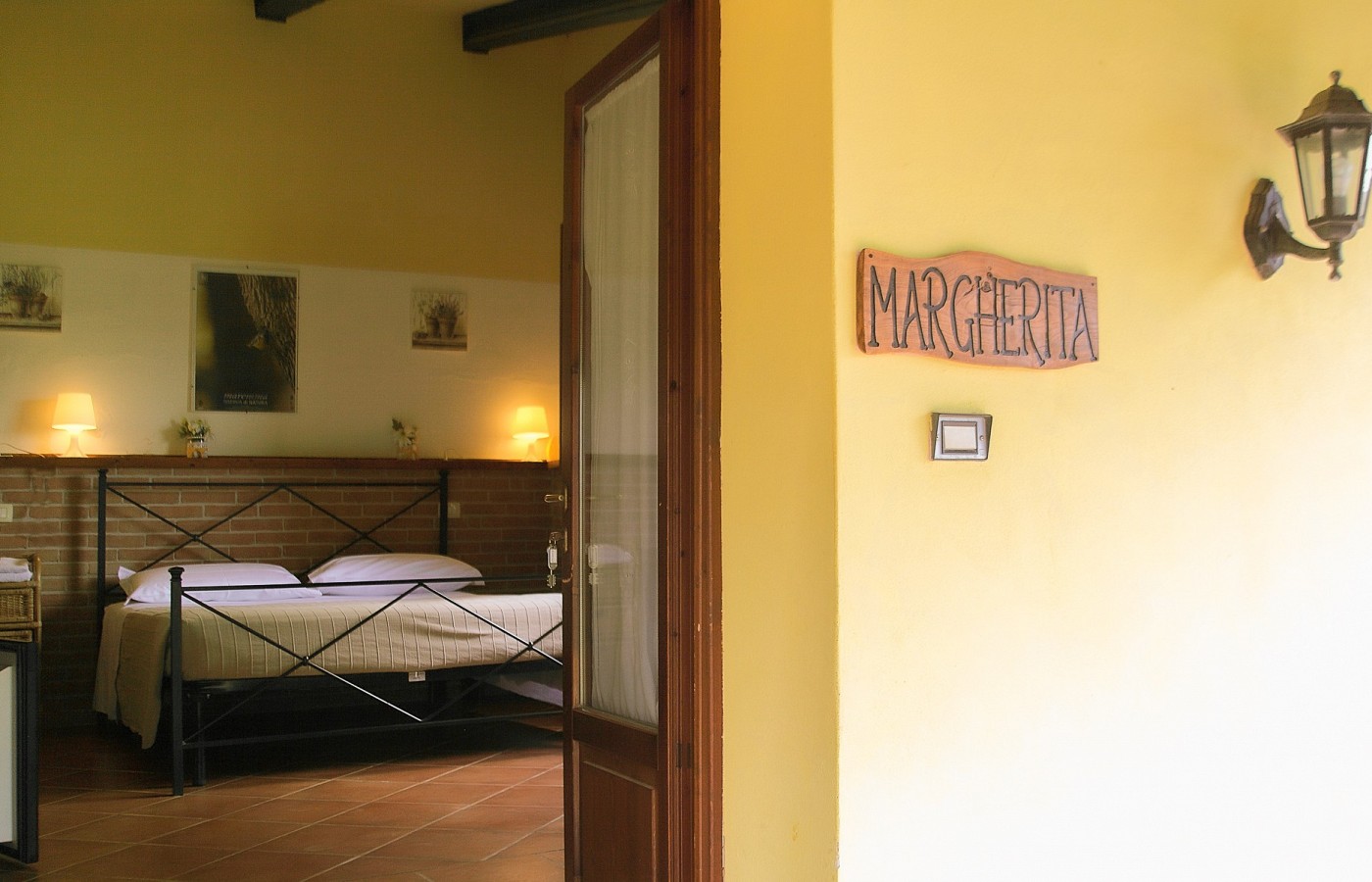 Margherita is a double room with private bathroom, ideal for couples. It consists of a spacious double room overlooking a private porch, furnished with table and chairs, perfect for enjoying peaceful summer evenings. The bathroom is equipped with a shower and hairdryer.
