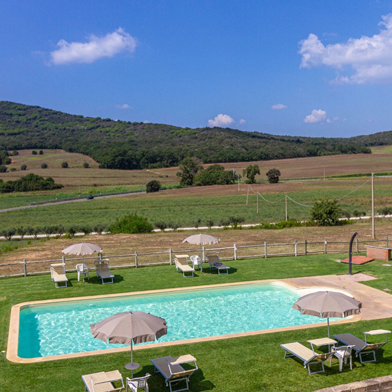 Just a few steps from our accommodations, you can enjoy our swimming pool, immersed in the quiet of the Tuscan Maremma. A refreshing swim surrounded by greenery and a breezy, peaceful solarium are the ideal setting for those who want to relax both mind and body.